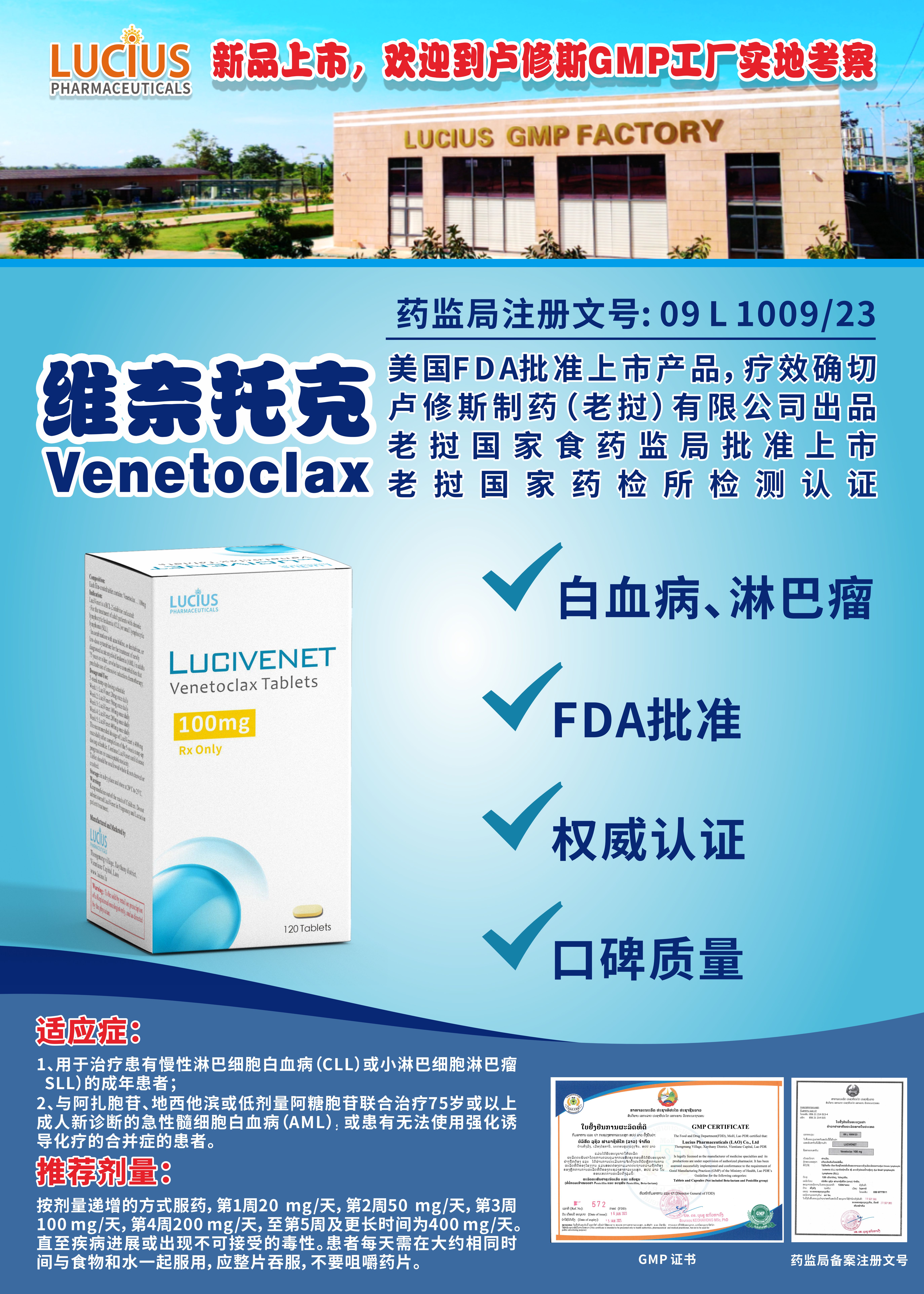 老挝卢修斯作为一家制药企业,在生产维奈托克仿制药时,遵循国际药品生产质量管理规范(GMP) 。从药物成分来看,老挝卢修斯版维奈托克的有效成分与原研药一致,均为维奈托克,理论上在作用机制和治疗效果上应该与原研药相似 。许多使用过老挝卢修斯版维奈托克的患者反馈,在治疗过程中,病情得到了有效的控制,各项症状也有所改善 。从一些小规模的临床观察数据来看,其在慢性淋巴细胞白血病和急性髓系白血病的治疗中,部分患者的缓解率和生存期与使用原研药的患者相当 。