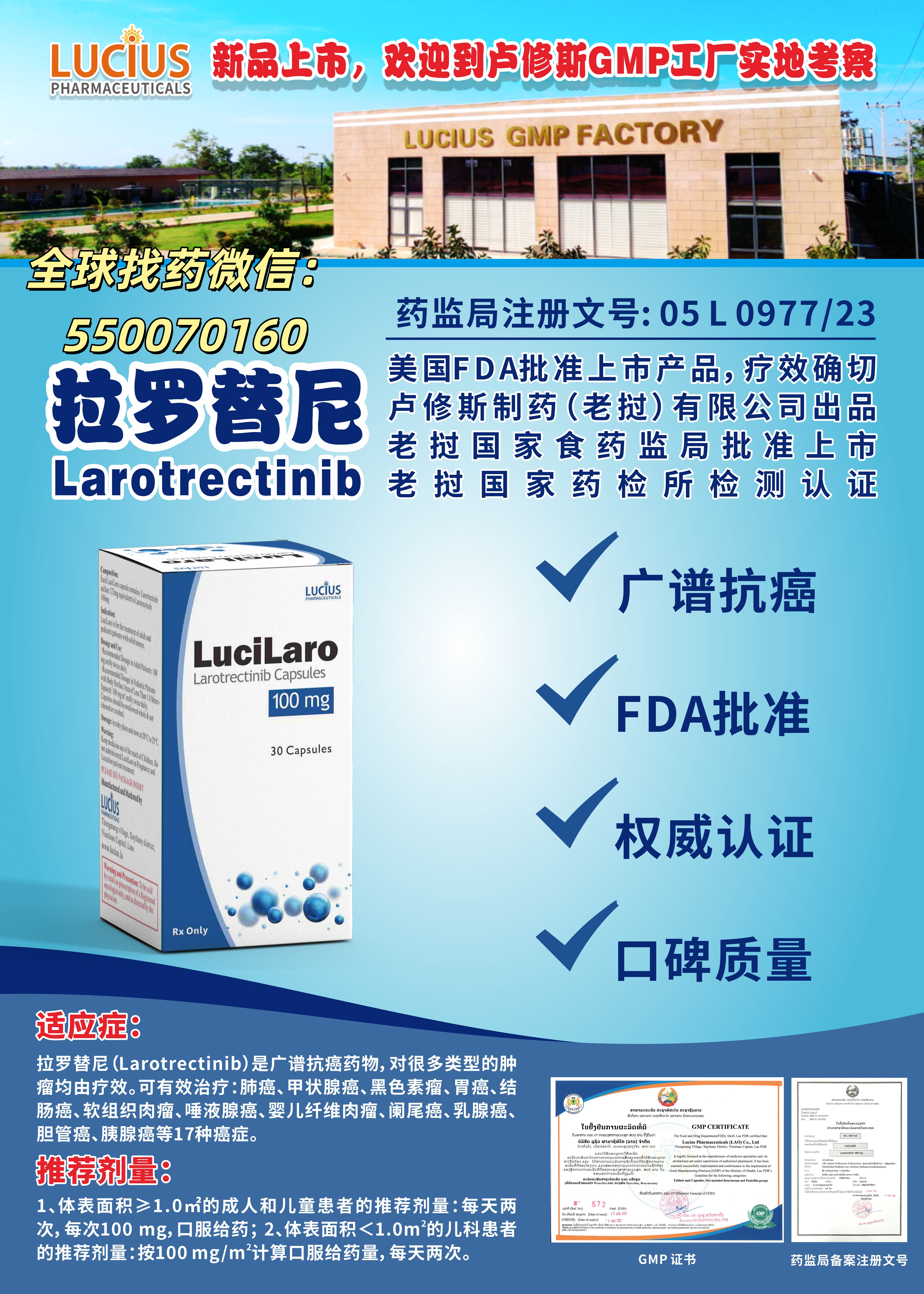 - 正规印度拉罗替尼:需通过印度药品监管部门(CDSCO)批准,且符合国际质量标准(如 WHO-GMP 认证),其有效成分、剂量、生产工艺与原研药一致,能保证治疗效果;