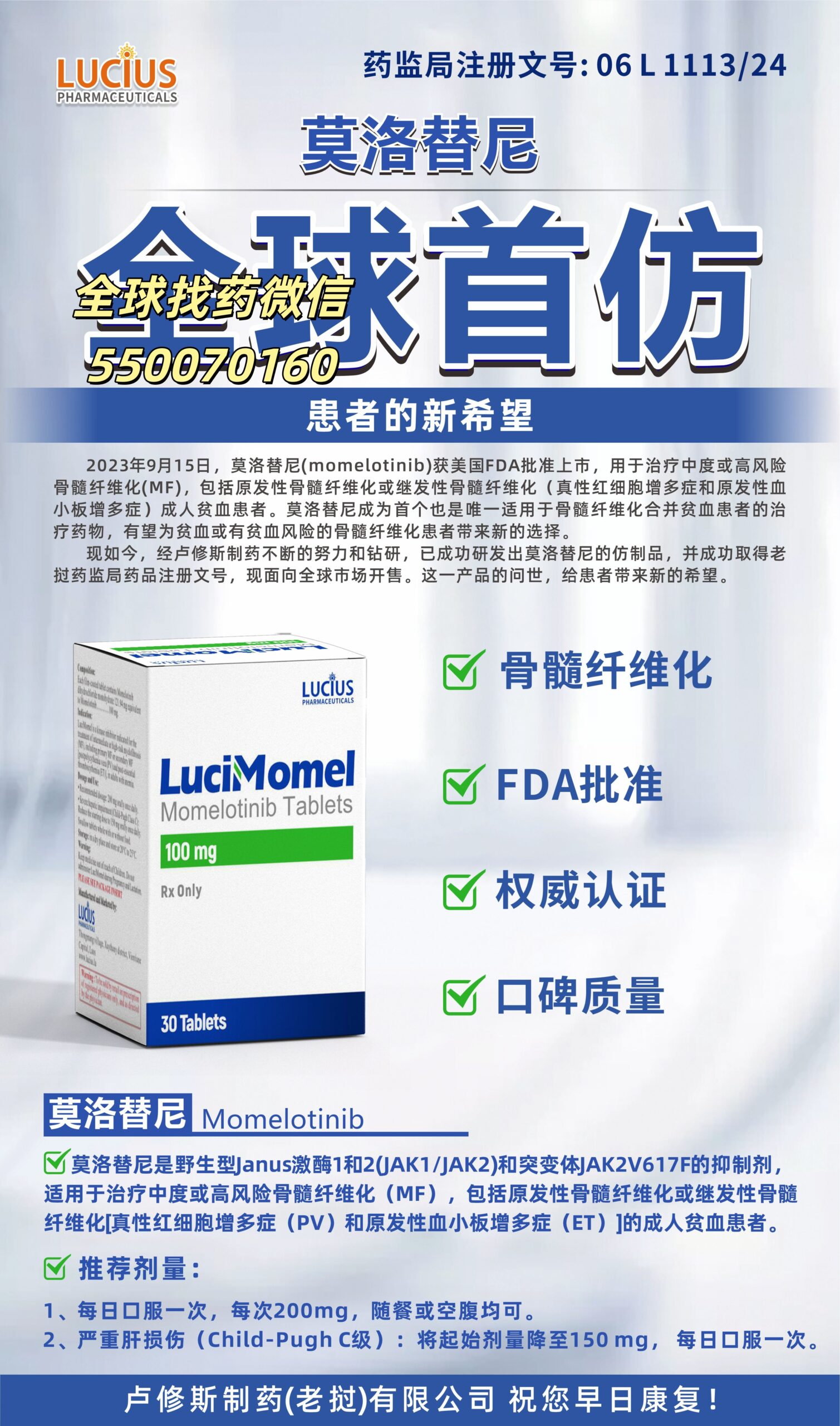 在骨髓增殖性肿瘤治疗领域,骨髓纤维化(MF)因存在严重的脾肿大、乏力、贫血等症状,且易进展为急性白血病,患者生活质量极差、生存期短(中位生存期仅 5-7 年)。莫洛替尼(Momelotinib)作为全球首个同时抑制 JAK1/JAK2/ACVR1 的多靶点抑制剂,不仅能缓解骨髓纤维化相关症状,还能改善贫血,为传统治疗无效的患者带来新希望。随着临床需求增加,“印度代购莫洛替尼”“老挝代购莫洛替尼”“孟加拉代购莫洛替尼” 逐渐成为患者及家属关注的核心话题 —— 如何在控制治疗成本的同时,通过合规渠道获取安全有效的莫洛替尼,成为骨髓纤维化患者亟待解决的关键问题。本文将从莫洛替尼的治疗价值、国内用药困境入手,全面解析印老孟三国代购的优势、风险与合规选择,为患者提供科学指导。