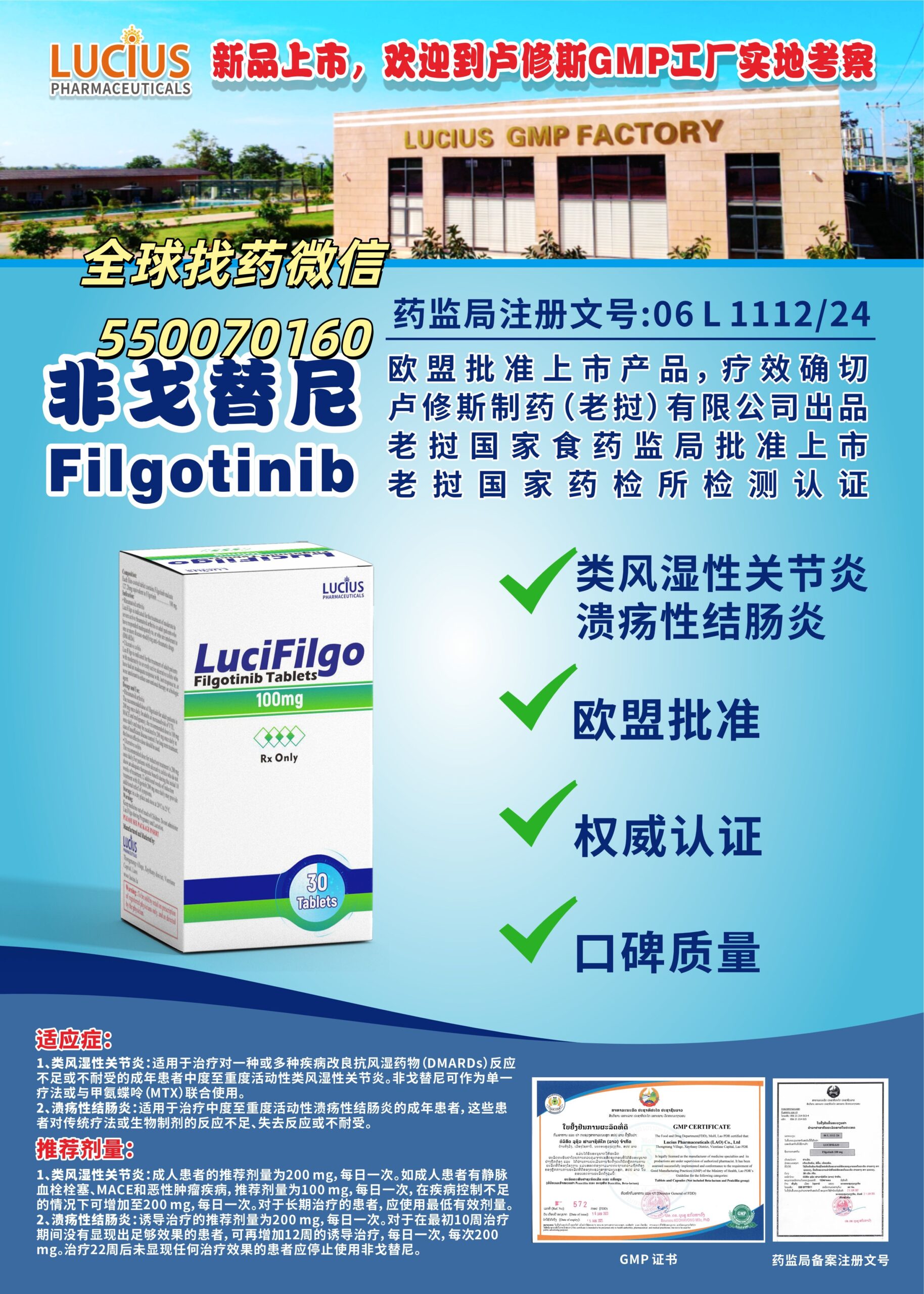 - 定制化疾病服务:部分老挝药企提供 “自身免疫病用药咨询” 服务,协助患者对接国内风湿免疫科 / 消化内科专家(如北京协和医院、上海仁济医院),获取规范诊断与治疗方案;同时支持 “小批量试用装订购”(如 2 周剂量),方便患者在正式用药前评估耐受性(如是否出现严重腹泻、头痛),避免药品浪费。