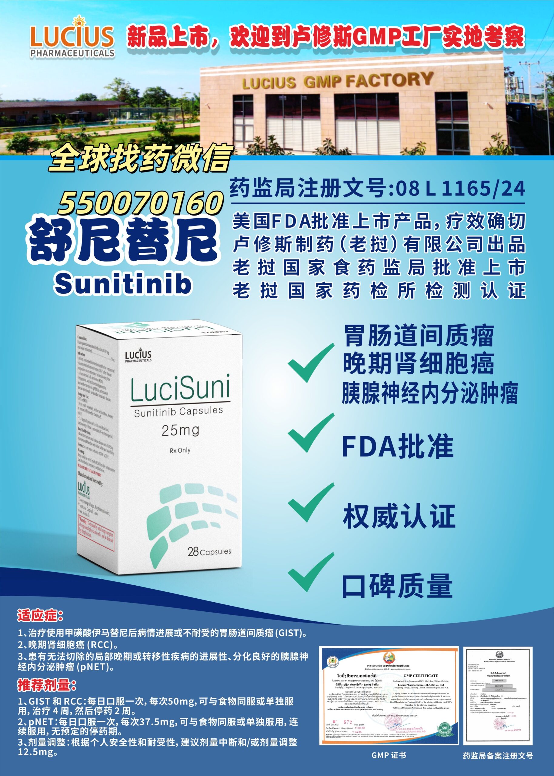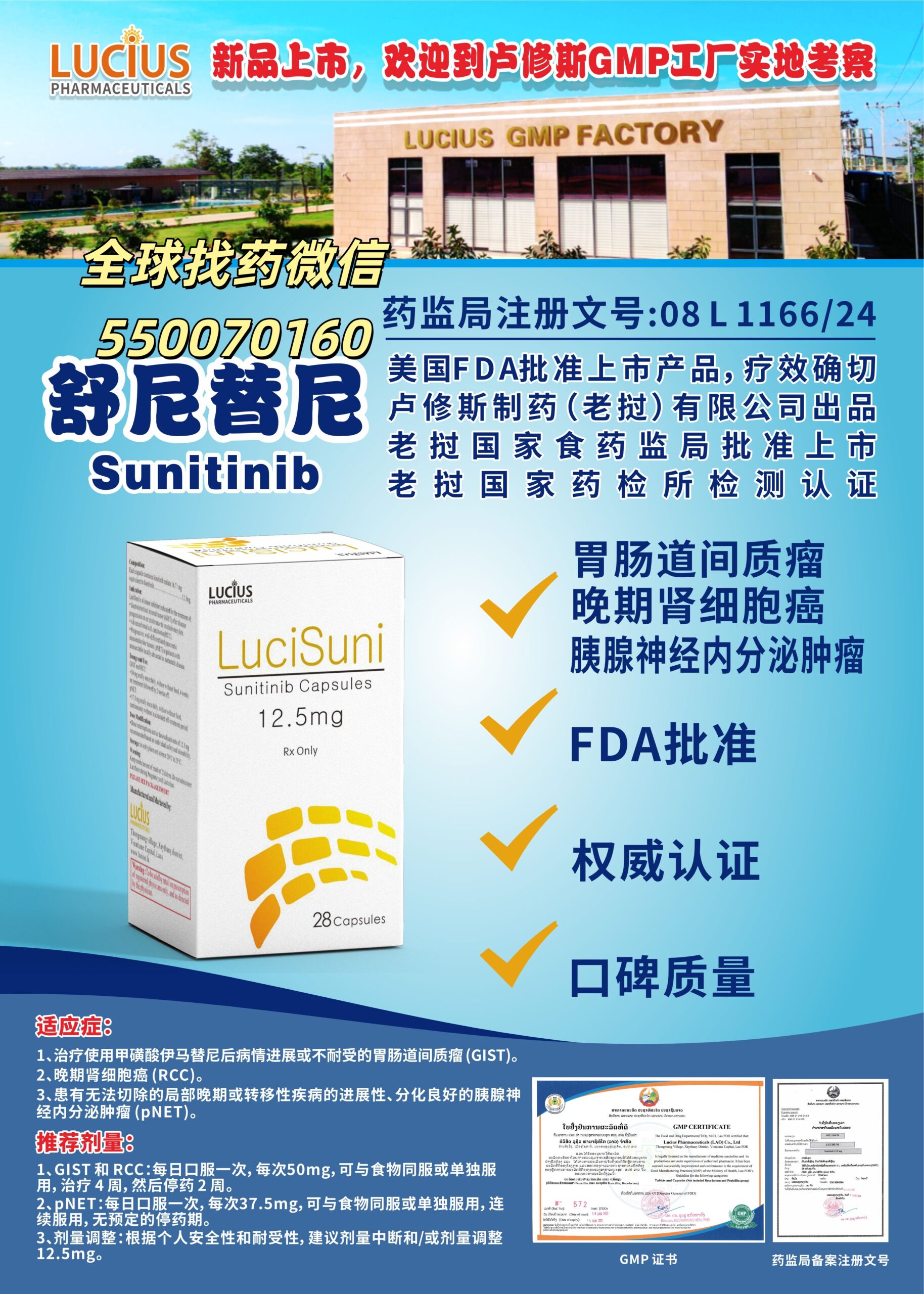 • 罕见瘤种适配性强:老挝药企针对 pNET 等罕见瘤种,专门优化了 37.5mg / 天的剂量方案,提供 25mg+12.5mg 组合包装,方便患者精准用药;同时开展了 pNET 患者专项临床验证,数据显示疾病控制率达 75%,与原研药(78%)接近,满足罕见瘤种患者的个性化需求。
